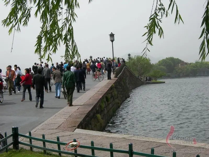 蘇堤は蘇東坡が杭州を治めた時の功績の一つで西湖を疏浚した泥で作った長い堤です。蘇東坡は北宋時代の杭州知事の任期中に、杭州の軍民を動員し西湖の泥を掘り出しました。後に蘇東坡を記念して蘇公堤と名付けられました。