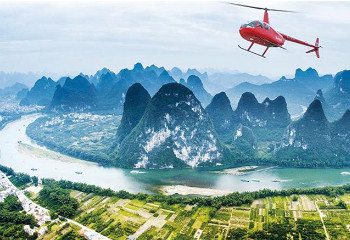 山の頂上から丘や川のすばらしい景色を上から見渡したり、自然の風景を楽しみながら美しく透き通った漓江の川下りをしたりします。さらには鳥がさえずり、花が咲き誇る川沿いの地元の村でサイクリングを楽しむこともできます